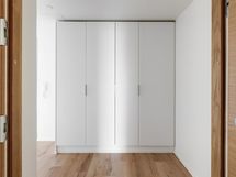 Asunnon pohjaratkaisu on käytännöllinen ja toimiva, ja eteisen säilytystilat helpottavat arjen järjestystä. Makuuhuoneessa on kaksi oviaukkoa huoneen molemmissa päissä, mikä lisää tilan käytettävyyttä ja tekee kulkemisesta sujuvaa.