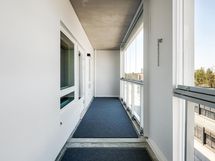 Tämän kodin ehdoton katseenvangitsija on koko asunnon levyinen, valtava lasitettu parveke, joka tuo tilaan avaruutta ja lisää merkittävästi asumismukavuutta. Parveke toimii lähes ylimääräisenä huoneena – täydellinen paikka oleskeluun, etätöihin tai rentoutumiseen keväästä pitkälle syksyyn.