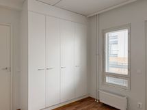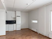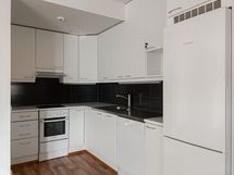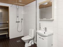 Tämä kompakti kaksio tarjoaa toimivan ja kodikkaan pohjaratkaisun. Pähkinään taittava tammilaminaatti luo asuntoon lämpimän ilmeen. Keittiössä on vaaleat kaapinovet, astianpesukone, keraaminen liesi ja harmaa välitilan laatoitus. Kylpyhuone on laatoitettu ruskeansävyisellä lattialla ja valkoisilla seinillä, ja siellä on paikka pyykinpesukoneelle. Asunnon oma sauna tekee arjesta mukavampaa. Olohuoneesta on kulku lasitetulle parvekkeelle, joka toimii lisätilana lähes ympäri vuoden.