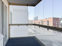 Pohjaratkaisu on selkeä ja erittäin toimiva. Makuuhuoneessa on hyvin tilaa säilytykselle vaatehuoneen ansiosta ja olohuone yhdistyy luontevasti keittiöön. Asunnon kruunaa hyvän kokoinen lasitettu parveke, joka toimii lisähuoneena ympäri vuoden.