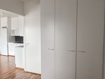 Tämä näppärä yksiö, erillisellä alkovilla tarjoaa toimivan ja selkeän pohjaratkaisun ilman hukkaneliöitä. Lattiamateriaalina on pähkinään taittava tammilaminaatti, joka tuo asuntoon lämpöä ja kodikkuutta.