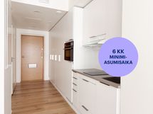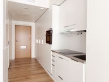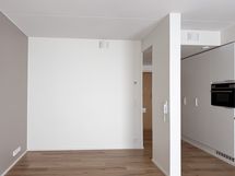 Koti avautuu harmonisena ja valoisana kokonaisuutena, jossa jokainen yksityiskohta tukee modernia ja helppoa asumista. Kaunis tammilaminaatti ja huolella valittu tehosteseinä tuovat syvyyttä ja lämpöä sisustukseen. Kompakti keittiö tarjoaa kaiken tarpeellisen arjen ruoanlaittoon ja on varustettu induktioliedellä, vaaleilla kaapeilla, harmaalla työtasolla sekä integroidulla astianpesukoneella.