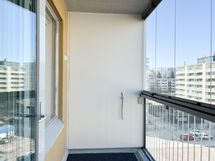 Huoneiston levyinen lasitettu parveke tuo lisää valoa ja avaruutta sekä mukavan oleskelutilan.