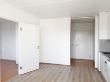 Kodissa on lattiana tammilaminaatti ja seinät on maalatut. Kylpyhuone on tyylikkäästi laatoitettu ja siellä on tila pyykinpesukoneelle. Keittiössä on vaaleat pinnat ja varusteisiin kuuluu kapea astianpesukone sekä keraaminen liesi. Keittiö ja olohuone ovat avointa yhtenäistä tilaa. Parveke on olohuone-keittiön yhteydessä. Makuuhuoneessa on kaapistot säilytystilaksi.