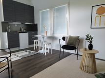 Ilmoituksen kuvat ovat showroomista, vuokrattavat ja myytävät kohteet ovat ilman kalusteita.