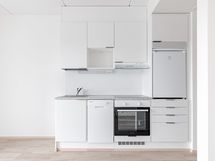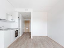 Tässä kesällä 2022 valmistuneessa kerrostalokodissa on vaaleat pinnat ja kalusteet. Arkea sujuvoittavat keittotilan laadukkaat kodinkoneet, joihin lukeutuvat keraaminen liesitaso, erillisuuni, liesituuletin, astianpesukone ja jääkaappi pakastinlokerolla. Laatoitetussa kylpyhuoneessa on liitäntä asukkaan omalle, 60 cm leveälle pyykinpesukoneelle. Kylpyhuoneessa jalat pitävät lämpimänä mukavuuslattialämmitys. Asunnossa on lasitettu parveke.