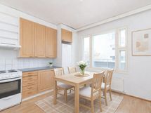 🏠 Tässä valoisassa kaksiossa on erillinen keittiö, josta löytyy paljon tasotilaa. Keittiöön tulee ikkunasta kauniisti luonnonvaloa, ja ruokapöytä mahtuu samaan tilaan hyvin. Erillisestä olohuoneesta on käynti parvekkeelle, joka tuo huoneistoon lisää neliöitä ja avaruutta etenkin kesäisin.
