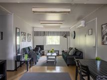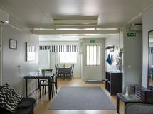 4 asuin/majoitusrakennusta sekä yhteiskäyttörakennus jossa saunatilat, oleskeluhuone, pukuhuone jne.