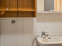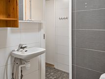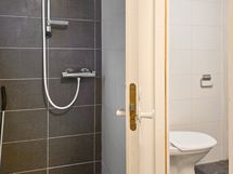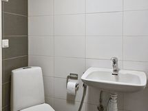 - Pesutilojen varusteet: WC-istuin, suihku, pesukoneliitäntä, lattialämmitys, peilikaappi, pesuallas ja bidee-suihku. Pesutilojen kuvaus: Kylpyhuoneesta pääsy kuistille sekä olohuoneeseen. Kaksi kpl wc-istuimia sekä pesuallasta.