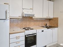 - Keittiön varusteet: Jenkkikaappi, astianpesukone, uuni, liesi ja liesituuletin. Liesi: Valurautaliesi. Työtason materiaali: Laminaatti.
