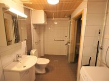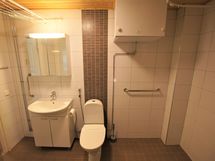 Pesutilojen kuvaus: Erittäin hyväkuntoinen ja tilava, laatoitettu ph. . Varustus: lattialämmitys, wc-istuin, suihku, peilikaappi.