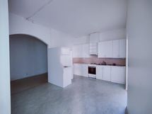 Keittiön varusteet: Jääkaappipakastin, liesituuletin ja liesi. Liesi: Sähköhella. Työtason materiaali: Laminaatti.