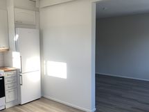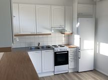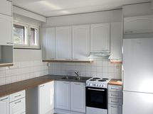 Tilaa isolle ruokapöydälle, Paljon kaappitilaa, Paljon työskentelytilaa, Pesukoneliitos, Sähköliesi
