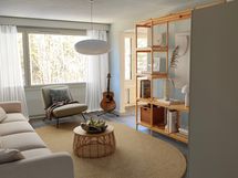 Mustikkahaassa hissitalossa pintaremontoitu 74,5 m² kolmio lasitetulla parvekkeella. Asukkaiden käytössä veloitukseton 25M taloyhtiönetti.