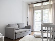 Monthly price, when rental is min. 12 months. In case you need an accommodation for shorter period, check the prices from www.2ndhomes.fi or contact us! ---- Kompakti ja valoisa yksiö rauhallisella sisäpihalla toisessa kerroksessa. Helsingin upeat kahvilat, ravintolat ja putiikit ovat aivan vieressä samoin kuin Rautatieasema tai Esplanadin puisto tai Stockmann. Halutessasi voit tutustua laajemmin Helsinkiin kävellen tai aivan vierestä kulkevien julkisten liikenneyhteyksien avulla. Asunnosta löytyy mm. pyykinpesukone ja tiskikone.