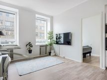 We are seeking tenants for a flexible rental period at this central, artistic, and fully furnished one-bedroom apartment in Kamppi, Helsinki. The apartment comes fully equipped and features a spacious layout offering comfortable living whether you're here for work or leisure. The apartment has a dishwasher and a washing machine. The building has an elevator. The bedroom has a closet size the whole wall, that cannot be found in the photos.