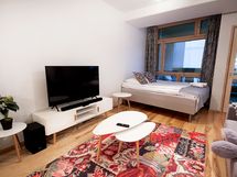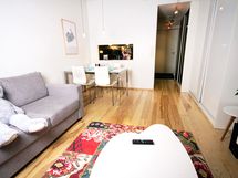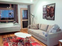 This 41m2 apartment has everything you wish for a luxurious stay in Helsinki. It has a room with large high quality bed and a sleeping sofa for two. You can relax and have a private sauna in the apartment, as well as enjoy the afternoon and evening sunlight in the large terrace. The materials are selected with great care as there is a parquet floor, Bosch washing machine and dryer, kitchen table for four people, nice balcony furniture, etc. in the apartment so that your stay would be as pleasant as possible.