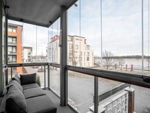 Asunto on tilava ja valoisa toimivan pohjaratkaisunsa vuoksi. Etätyöpisteeltä suora näkymä Vanhankaupunginselälle. 6- ja 8-sporat pysähtyvät talon kulmalla, meren rantaan 100m kävelymatka, josta aukeavat laajat ulkoilumahdollisuudet aina Vanhankaupungin koskelle ja Lammassaareen asti. Kauppakeskus Arabia sijaitsee 900m päässä, josta löytyy suuret ruokakaupat. Tien toisella puolella Alepa.