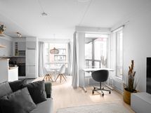 A stylish and remote work -friendly fully furnished and equipped 1-bedroom apartment with own sauna and balcony, seaview, and cinema corner is coming into market from the seaside neighbourhood of Arabianranta, Helsinki. Flexible contracts ranging from 1 week to 24 months.
