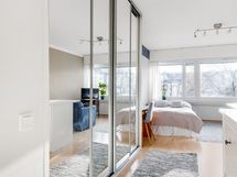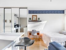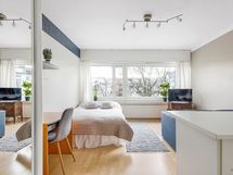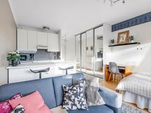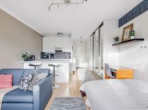 We are looking for new tenant(s) to this bright fully furnished and equipped apartment in the fourth floor for a flexible period ranging from a week to a full year and over in Neljäs linja Kallio, Helsinki. This neat and tidy studio accommodates from two to four persons thanks to an extendable sofa-bed as well as enables remote working due to the workstation and wifi included. The island in the open kitchen invites to enjoy breakfast either by yourself or with some company. Washing machine inside apartment.