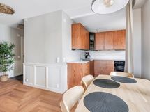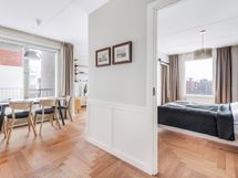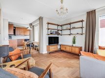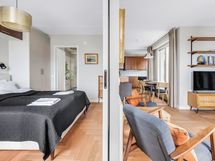 We are looking for tenants for a flexible time period starting from one month to this superb location fully equipped and according to the photos furnished apartment in Katajanokka Helsinki. The apartment has been renovated completely and the renovation has been finished in 04/2022. The glimmering sea in the living room window, own balcony, a remote-work friendly workstation, as well as the grocery store located downstairs as well as the tram stop in front guarantee a convenient stay also for longer term. Own dishwasher and washing machine inside apartment, a common laundry with larger machines downstairs.