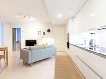 Welcome to this stylish and spacious one-bedroom apartment along one of the most prestigious and sought after streets in Helsinki - Bulevardi. This premium level apartment is finished with quality materials and contemporary furnishing. The apartment is also equipped with free Wi-Fi and a washing machine, as well as a comfortable twin bed, making this the ideal apartment for two guests in need of long-term accommodation. The kitchen includes modern integrated appliances and all the necessary equipment for preparing food: pots and pans, tableware, oven, microwave, refrigerator, dishwasher, blender, coffee machine, kettle and toaster. The central location of this apartment enables effortless access to a plethora of attractions, shops and services Helsinki has to offer: the department store of Stockmann, the famous harbor with its cafes and local market, among many other sights and locations, are all just a stone’s throw away. You may also find several parks in the close vicinity, like the history filled park of Vanha kirkkopuisto, which is located just across the street. Furthermore, commuting is a breeze, as numerous tram lines run along Bulevardi, and the Central railway station, with its rail and metro connections, is under a 10 minute stroll away.