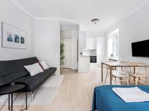 We are looking for a tenant(s) for a flexible time period into this fully furnished and equipped studio in lively Kallio neighbourhood only 4-minute walk away from the Sörnäinen metro station. Fast wifi, recently installed brand new kitchen, dishwasher, washing machine, microwave, large cupboard space, a smart-tv, and nearby 24/7 grocery stores will guarantee a most convenient stay for shorter or longer time periods.