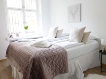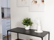This spacious apartment is perfect choice for business or holiday trip! Super central location right next to Forum shopping center and all services. This first floor courtyard apartment has well equipped kitchen with dishwasher and dining area for 6 guests. Cozy facilities, big bedroom with ensuite bathroom, sleeping alcove next to the spacious living room and recently renovated bathroom with toilet and washer.