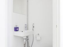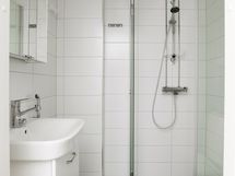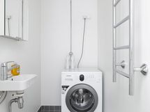 Suihkuseinä, Suihku, Pesukone, Peilikaappi, Allaskaappi, Rättipatteri, Erillinen WC