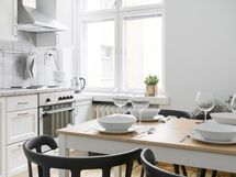 Paljon työskentelytilaa, Astianpesukone, Liesituuletin, Liesi tai uuni erikseen, Jääkaappi, Pakastin