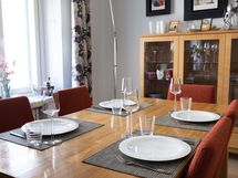 This cozy apartment has 2 separate bedrooms, large, well-equipped kitchen with a dishwasher, living area with a working desk and modern bathroom with a gorgeous sauna. 2nd bathroom has a toilet and a shower. There is also a separate toilet with a washer and a dryer. Nearest shopping center Kluuvi just 100m away, central station behind the corner and nearest stops just 50 away. This is the best location you can get in Helsinki! All services and sights within walking distance but still far enough from the noise and city buzzle to enjoy your stay!