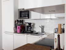 Tilaa isolle ruokapöydälle, Paljon kaappitilaa, Paljon työskentelytilaa, Astianpesukone, Induktioliesi, Liesituuletin, Jääkaappi, Pakastin