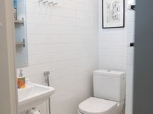 Suihku, Pesukone, Kuivausrumpu, Laattaseinä, Laattalattia, Erillinen WC