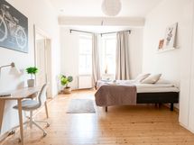 Come and enjoy this spacious and cozy 1 bedroom apartment. The location is the best it can get - at Yrjönkatu surrounded by all the best services, restaurants and cafes. Shopping Centre Forum is located next door. There is a separate kitchen with a dining table. Big bedroom with two entrances and a living room. There is a washer in the bathroom and also a separate toilet in the apartment. The windows from bedroom and living room are facing to the quiet courtyard.