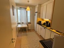 Kolmen makuuhuoneen asunto Pohjois-Haagassa Rauhallinen kahden tornitalon muodostama taloyhtiö sijaitsee päättyvän tien lopussa vehreän puiston laidalla korkealla paikalla mäen päällä ja asunnosta aukeaa huikeat näkymät yli Helsingin. Asunnossa on yksi iso makuuhuone sekä kaksi pienempää. Erillinen keittiö on varusteltu aamiaispöydällä. Tilavassa olohuoneessa on iso ruokapöytä sekä sen yhteydessä lasitettu parveke. Pohjois-Haaga on perinteinen ja vehreä asuinalue, jossa on loistavat liikunta- ja ulkoilumahdollisuudet. Pirkkolan urheilupuiston alue alkaa aivan taloyhtiön takapihalta ja koko kaupunginosan läpi kulkee useita puistomaisia kävelyreittejä. Alueelta löytyy useita kouluja ja päiväkoteja sekä päivittäispalvelut. Lisäksi kävelyetäisyydellä on kirjasto, apteekki ja terveysasema. Juna-asema sijaitsee kävelyetäisyydellä ja Hämeenlinnan väylää kulkee useita seutu- ja U-linjoja Vantaan, Klaukkalan ja Nurmijärven suuntiin. Asunnossa on varusteltu keittiö. Vuodevaatteet ja pyyhkeet ovat valmiina. Heti vapaa, Vuokra-aika on vähintään yksi kuukausi. Asunnot vuokrataan väliaikaisesti määräaikaisella sopimuksella kevääksi. Lisää tietoja voit kysellä Tommi Kautoselta, tommi.kautonen@kotimaailma.com, 0444935519. Tarjoushintaisia asuntoja saatavilla vain rajoitetusti.
