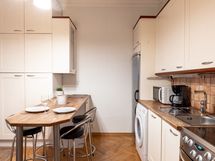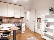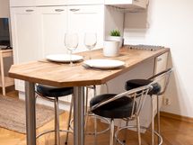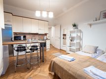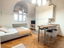 This 25m2 studio apartment is located just in the center of Helsinki, in Erottaja. All the services can be found near the apartment and public transportation lines only a minute away! The apartment has great views from the 5th floor. There is both a washer and a dishwasher in the apartment.