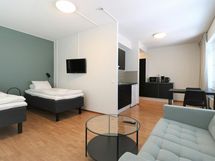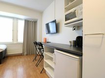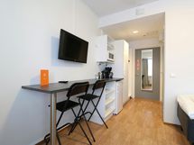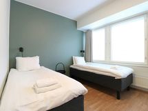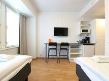 Forenom Aparthotel Helsinki Herttoniemi is part of Forenom's apartment hotel concept, which aims at providing simple, hassle-free accommodation at a competitive price. The compact 18 m2 room is equipped with wireless internet connection and a keypad lock for easy access. The room is furnished with two single beds, armchair, table and chairs, flat screen television and wardrobe. It also has a refrigerator, coffee-maker, electric kettle and microwave. The room also has a separate bathroom with a shower. Forenom Aparthotel Helsinki Herttoniemi is situated in Helsinki's lively Herttoniemi district, where you are able to find a plethora of shops and services - all within a walking distance away. For example, a café-deli, supermarket, pharmacy and gym, among many other shops and services, are all just a stone's throw away. Furthermore, Herttoniemi metro station is only a 5 minutes’ walk away, and the ride from there to Helsinki city center takes just 10 minutes, and to Itäkeskus shopping center, just 5 minutes.