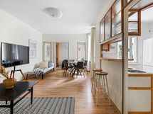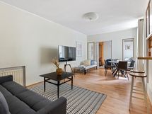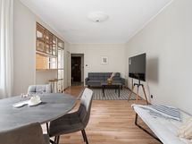 We are looking for tenant(s) to this beautifully designed, fully furnished and equipped 1-bedroom apartment in the heart of distinguished Kruununhaka neighbourhood located a 6-min bus ride or a 15-minute walk away from the Helsinki Centrum. Walking distance to the waterfront and the beautiful Tervasaari island enable winding down after the day.