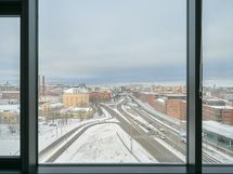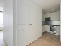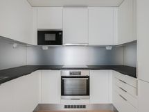 Uusi upea 8. kerroksen kaksio. Laadukkailla kodinkoneilla varustellusta valkoisesta avokeittiöstä löytyy induktiotaso, astianpesukone, erillisuuni ja mikro, tai mikrouuniyhdistelmä. Asunnon suuret ikkunat ovat länteen, josta näkymä on kaupunkiin. Asunnon kuvat huoneistoa vastaavasta asunnosta, mutta eri kerroksesta. Ikkunat ovat samaan ilmansuuntaan.