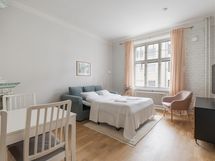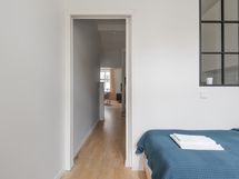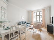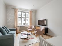We are looking for a new tenant into a the central WeHost Iso Roobertinkatu 26 A for a flexible stay. The apartment is a bright and tidy furnished 2-bedroom apartment located in Punavuori, Helsinki. It is well-equipped with a convertible sofa, washing machine, dishwasher as well as a king-size bed and an option of one or two smaller beds. The fireplaces are not in use.