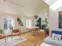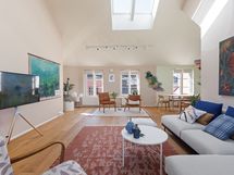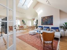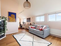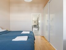 Each of the two bedrooms has 160 cm wide beds with high quality memory foam mattresses and ample cupboard space. The study, with a door separating it from the living room, has an extendable double sofa-bed and so it can serve as a guest room for family and friends. In addition to the sizable bathroom, there is a separate toilet. The skylights, which do not open, bring natural light into the apartment. There has been a cat living in the apartment in the past.