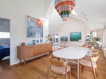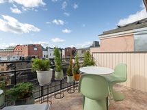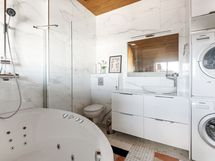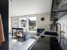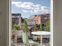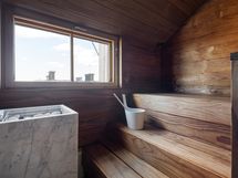 The balcony, which has west-facing views over the roofs, is a great place for morning coffee or a meal. The kitchen is spacious and well equipped, with a dishwasher, induction stove, kettle, microwave , refrigerator and freezer. It also has some special features, including a wine fridge, an integrated coffee machine, an ice maker, and a US-style toaster oven. The bathroom has a washing machine, dryer, jacuzzi tub. The sauna has a view of the Helsinki Cathedral.