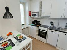 The stylish studio in Kruununhaka, Helsinki, is perfect for one or two guests seeking comfort and convenience. With fresh decor and a functional floor plan, the studio offers a versatile sleeping arrangement featuring a 100cm bed that extends to a 180cm double bed. Enjoy a bright shower room and a fully equipped kitchen complete with a refrigerator, freezer, microwave, coffee maker, kettle, toaster, and full sets of dishes and kitchenware.