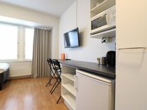Kompakti 18 m2 huone on varustettu koodilukollisella sisäänpääsyllä ja langattomalla internetyhteydellä. Huoneessa on sängyt kahdelle majoittujalle, pieni pöytä ja kaksi tuolia, taulutelevisio ja vaatesäilytystilaa. Huoneesta löydät myös jääkaapin, kahvin- ja vedenkeittimen sekä mikroaaltouunin. Huoneessa on lisäksi suihkulla varustettu kylpyhuone. Forenom Aparthotel Helsinki Herttoniemi sijaitsee eloisassa Herttoniemen kaupunginosassa, josta löytyy lukuisia kauppoja ja palveluita kävelymatkan päässä. Esimerkiksi café-deli, ruokakauppa, apteekki ja kuntosali, sekä lukuisat muut kaupat ja palvelut, löytyvät aivan kulman takaa. Kaiken lisäksi Herttoniemen metroasema on vain 5 minuutin kävelymatkan päässä, ja matka sieltä Helsingin keskustaan käy vain 10 minuutissa, ja Itäkeskuksen kauppakeskukseen vain 5 minuutissa.