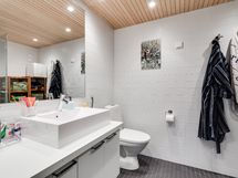 - Suihku, Allaskaappi, Laattalattia, Laattaseinä, Halogeenivalot, Lattialämmitys, Pesukone, Kuivausrumpu, Suihkuseinä