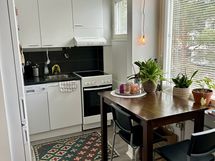 1.Yksiön koko 27 m2, 1 h+makuusyvänne, kk, eteinen, kph suihkulla, pesukoneliitäntä, astianpesukone, hella, jääkaappi-/pakastin yhdistelmä 2. 3krs, ikkunoiden suuntana etelä, ei hissiä 3. Eteinen; 2 kaapistoa, toisessa peiliovet, toisessa kääntyvät ovet, hyvin tilaa 4. Edellisen vuokralaisen palautteita asunnosta: a. sijainti loistava, juna-asema vieressä, josta muutama minuutti Pasilaan. Junalla pääsee myös Helsinki-Vantaa lentokentälle. Bussilinjat kulkevat läheltä. Paljon luontoa lähellä ja ihastuttava rodo/ruusupuisto. b. Lähikaupat ja posti kävelyetäisyydellä c. Asunto viihtyisä ja siisti. Rauhallista seutua. d. Taloyhtiön sauna viihtyisä/uudistettu, samoin pesutupa. e. Häkki tila varastoinnille kellarissa, 3 m2 f. Kylpyhuoneessa peili-ja alakaappi ja suihkutila