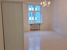 Yhtiössä on vielä hetken käynnissä pihakansiremontti, mutta tämän huoneen ikkuna on kadulle päin. Remontti ei siis juurikaan häiritse asumista.