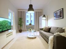 Welcome to this stylish and large studio apartment in the calm district of Etu-Töölö, Helsinki. This apartment is fully furnished with complimentary wifi and is primarily suitable for one guest, however, the addition of a loft provides further room for one more guest. The bathroom of this apartment is tiled and is equipped with a washing machine. You will also find a fully equipped kitchen with all the appliances you need: a dishwasher, oven, refrigerator, microwave, coffee machine and a kettle. There are a plethora of shops and services nearby, from grocery stores and small cafes to age-old bricks-and-mortar stores, to fulfill your daily needs. The surrounding area of Töölö is scattered with numerous parks and green areas, such as the parks of Väinämöisen puisto and Taivallahden puisto. Furthermore, commuting is a breeze, as tram and bus lines run along Mechelininkatu to and from Helsinki city center.
