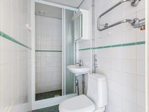 Ylimmän kerroksen päätyasunto nyt tarjolla! Kylpyhuoneeseen mahtuu oma pieni pyykinpesukone, mutta taloyhtiössä on myös pesutupa. Asunnossa on lasitettu parveke, joka tuo lisää oleskelutilaa.