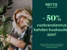 Kahden ensimmäisen kuukauden vuokra -50%! Etu voimassa uusille asiakkaille uusiin vuokrasopimuksiin. Vuokraedun saaminen edellyttää 6 kuukauden sitoutumista asuntoon.